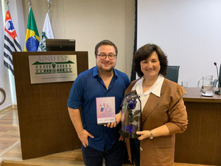 👏 A láurea foi entregue pelas mãos das professoras Raiane Assumpção (Reitora da Unifesp), Suzan Pantaroto (Pró-Reitora Adjunta de Pós-Graduação), Débora Galvani e Gabriela Arantes Wagner (Pró-Reitora e Pró-Reitora Adjunta de Extensão e Cultura, respectivamente).